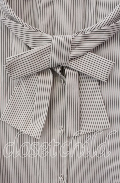F&A / ボウタイオフショルブラウス オフ×グレーストライプ O-25-09-23-007-LO-BL-IG-ZT361