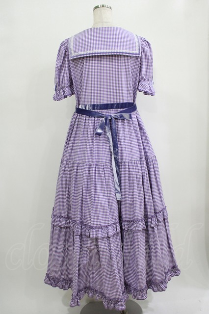 Maria pipi / セーラーカラーチェックレースドレス Free ラベンダー H-25-09-29-016-EL-OP-NS-ZH [戻る]