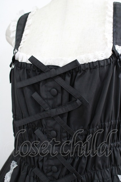 metamorphose / 【プラスサイズ】シャーリングティアードジャンパースカート プラスサイズ ブラック/ホワイト H-25-09-29-010-ME-OP-NS-ZH