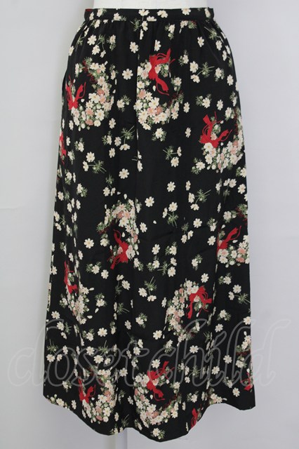 PINK HOUSE / 秋桜リースプリントスカート 黒X白X赤 T-25-09-26-028-LO-SK-SA-ZT439