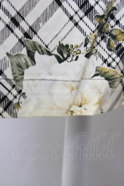 INGEBORG / モノトーンチェック&フラワーゴムスカート ホワイト T-25-09-26-013-LO-SK-SA-ZT442