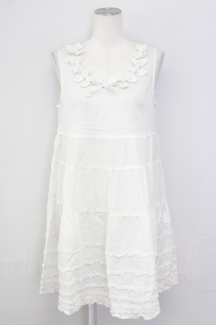 PINK HOUSE / 襟ぐりリボン水玉ノースリーブワンピース ホワイト×ベージュ T-25-09-26-005-LO-OP-SA-ZT443