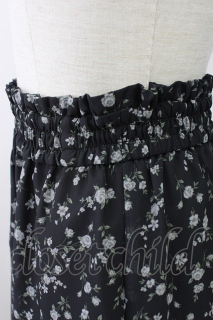 Ank Rouge / フラワー総柄シフォンロングスカート 黒Xグレー T-25-09-24-027-CA-SK-SA-ZT427