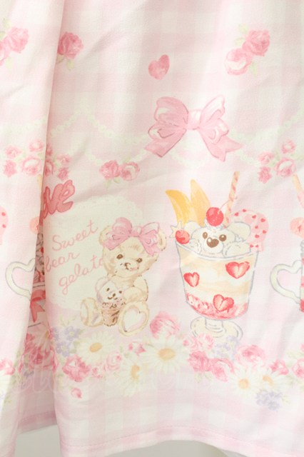 LIZ LISA / SweetBearGelato柄スカート ピンク T-25-09-24-016-LO-SK-SA-ZT423