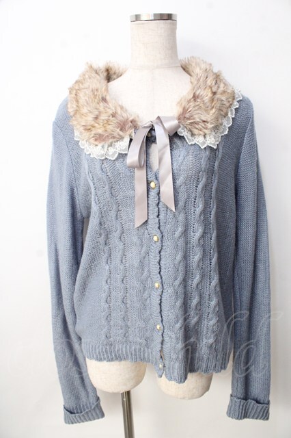 axes femme / ファー付ケーブル編カーディガン サックス Y-25-09-22-061-AX-TO-SZ-ZY