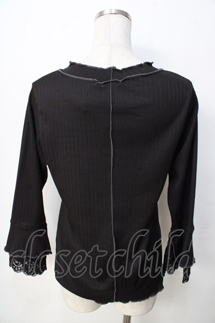 axes femme / レース重ね袖メローリブプルオーバー F 黒 Y-25-09-22-065-AX-TO-SZ-ZI