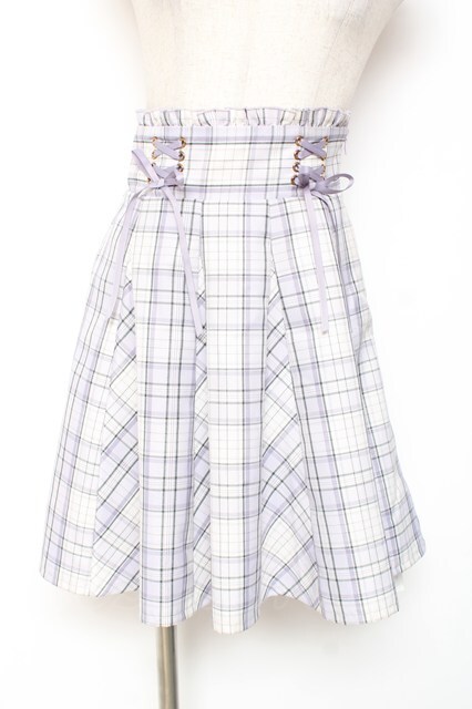 Amavel / ダブルレースアップはぎフレアチェックスカート ラベンダー Y-26-01-20-157-CA-SK-SZ-ZS