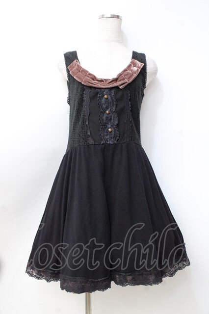 axes femme / ベロア使いワンピース M 黒 Y-25-09-25-086-AX-OP-SZ-ZI