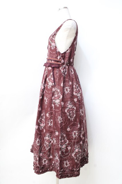 axes femme / 薔薇リース柄ワンピース ワイン Y-25-09-25-105-AX-OP-SZ-ZI