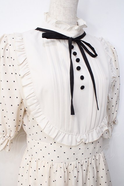 m petit by misako / 梨地水玉切り替えワンピース 生成り Y-25-09-25-110-LO-OP-SZ-ZT309 [戻る]