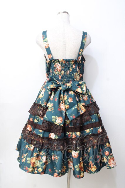 axes femme kawaii / アンティークローズ柄ジャンパースカート グリーン Y-25-09-25-119-AX-OP-SZ-ZI