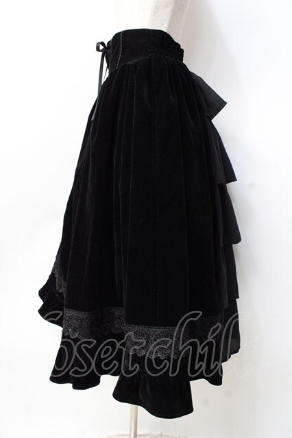 axes femme kawaii / ベルベットドールスカート 黒 Y-25-09-25-124-AX-OP-SZ-ZY