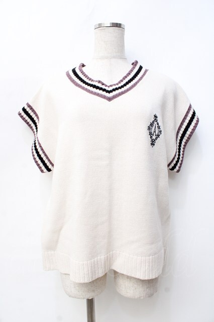 axes femme / 刺繍入カレッジ風ニットベスト 生成り Y-25-09-25-022-AX-TO-SZ-ZI [戻る]