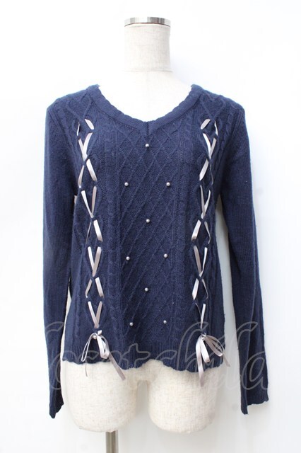 axes femme / レースアップVネックニット M 紺 Y-25-09-25-070-AX-TO-SZ-ZI