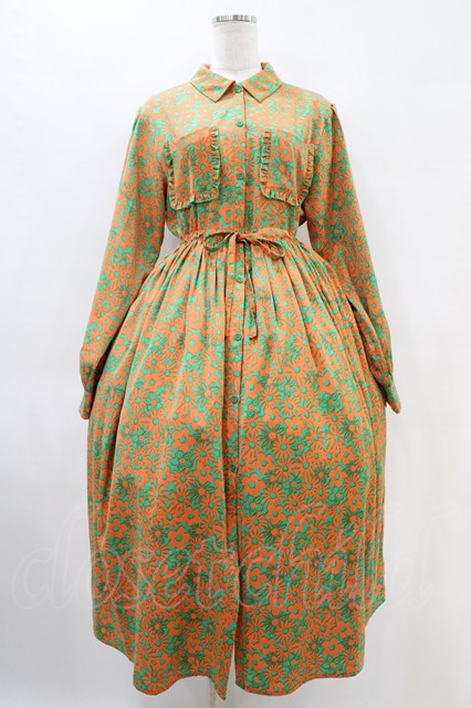 merry jenny / 2トーンフラワーシャツワンピース グリーン H-25-10-01-033-LO-OP-KB-ZH [戻る]