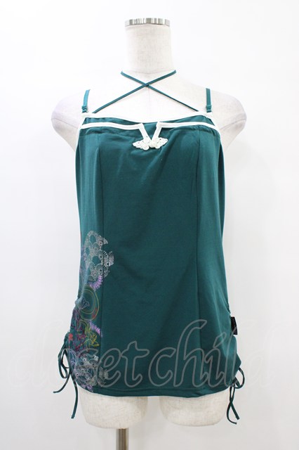 Ozz oneste / 和チャイナサイドギャザーキャミソール グリーン H-25-10-01-049-OO-TO-KB-ZT231