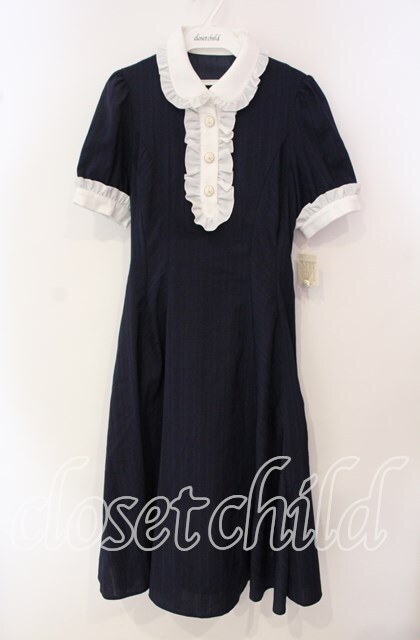 Secret Honey / フリルバイカラーロングシャツワンピース 2 ネイビー×シロ O-25-09-25-028-CA-OP-OW-OS