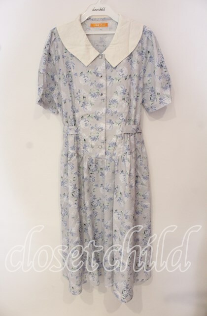 Fi.n.t / ビッグクレリック衿ローズ柄ワンピース F ブルー O-25-09-25-035-CA-OP-OW-ZT119 [戻る]