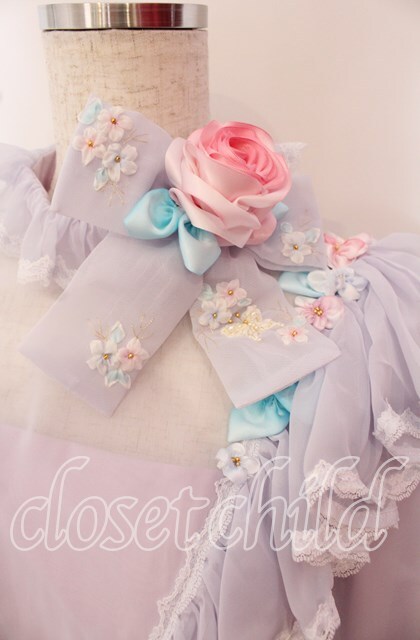 菫コルセット / リボンワークフラワーのシフォンドレス ラベンダー O-25-09-25-046-LO-OP-IG-ZT330