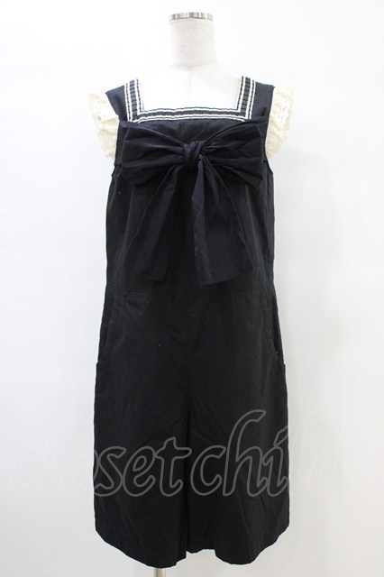 Jane Marple / リボンマリンサロペットパンツ 黒 H-25-10-02-013-JM-PA-KB-ZH