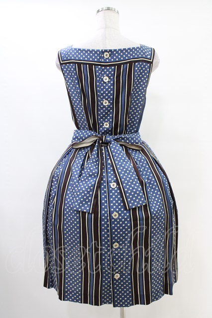 Jane Marple / ドットストライプのスクエアドレス ブルー×ブラウン H-25-10-02-021-JM-OP-KB-ZH