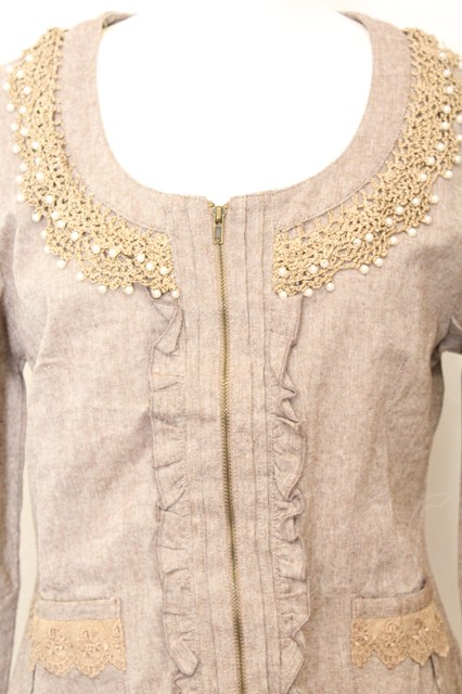 axes femme / ビーズレース配色ジップジャケット M ブラウン O-25-09-25-1026-AX-OP-IG-ZT283