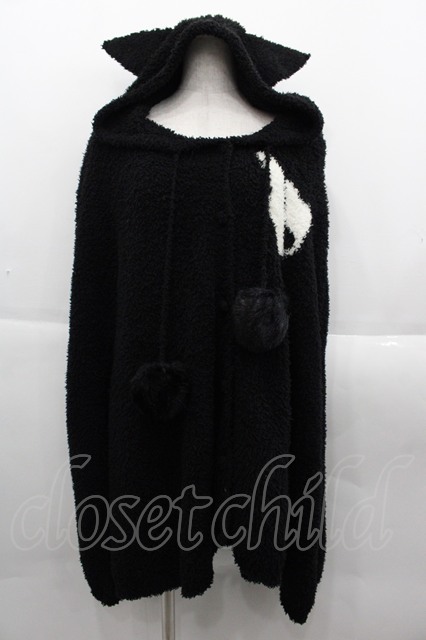 PUTUMAYO / 眼帯ねこもこもこケープ 黒X白 I-25-09-24-013-PT-JA-SA-ZI