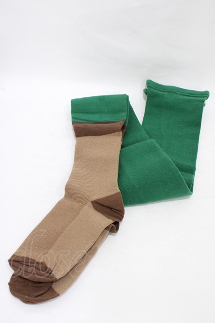 Jane Marple / レイヤードカラーブロックタイツ グリーン×ブラウン H-25-10-03-007-JM-ZA-KB-ZH