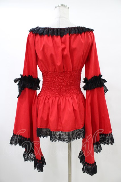 Triple fortune / シャーリングブラウス(長袖) M 赤 H-25-10-03-050-EL-BL-KB-ZH