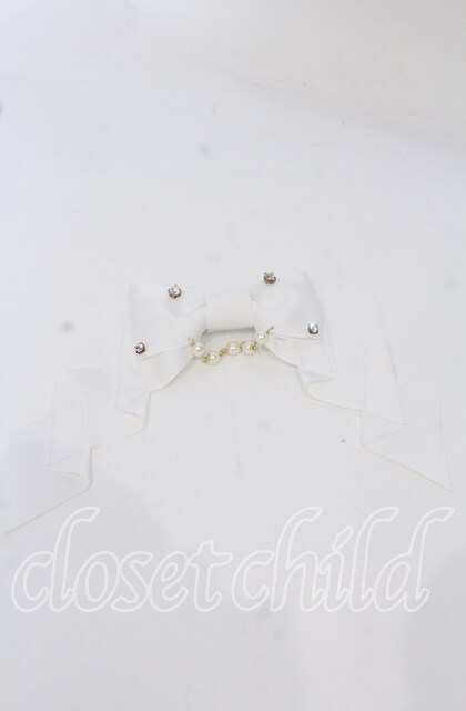 LOTUS ribbon / パールチェーンリボンバレッタ シロ O-25-09-26-048-EL-AC-OW-ZT486-F001 [戻る]
