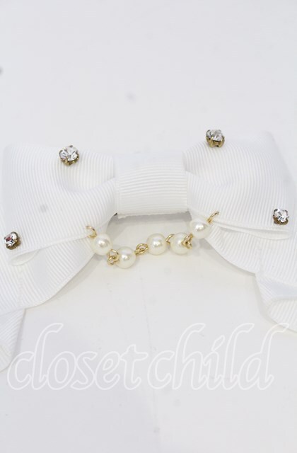 LOTUS ribbon / パールチェーンリボンバレッタ シロ O-25-09-26-048-EL-AC-OW-ZT486-F001