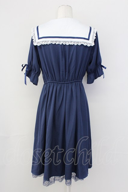 axes femme POETIQUE / フリルセーラーカラーワンピース ネイビー T-25-09-27-016-AX-OP-SA-ZI [戻る]