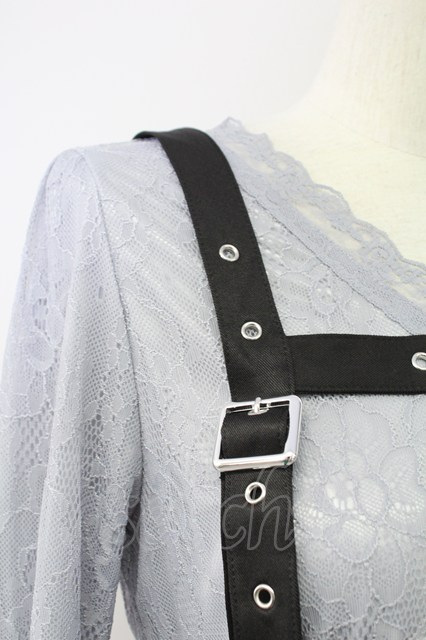 axes femme POETIQUE / ハーネスベルト付レースワンピース ブルーグレー T-25-09-27-023-AX-OP-SA-ZI