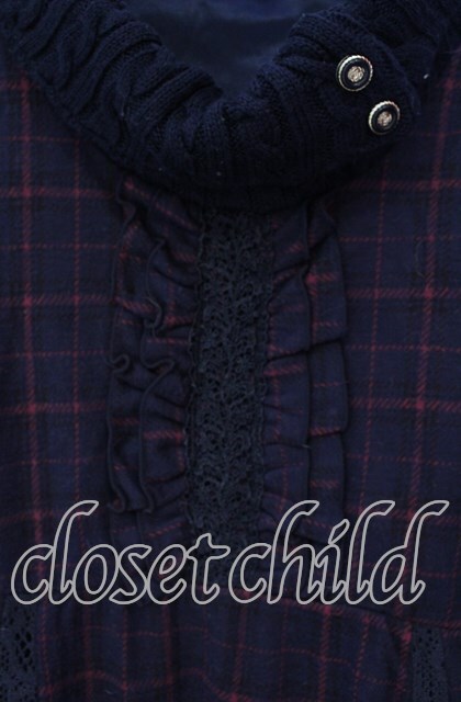 axes femme / チェック柄ハイネックニットワンピース M ネイビー O-25-09-27-024-AX-OP-OW-OS