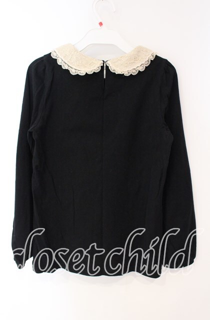 Franche Lippee / 丸襟レース長袖トップス M クロ O-25-09-27-102-LO-TO-OW-ZT373
