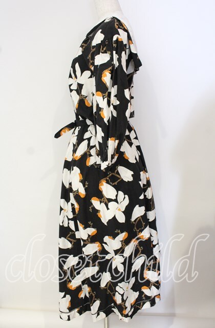 INGEBORG / モクレン柄セーラーワンピース クロ O-25-09-27-009-LO-OP-OW-ZT337