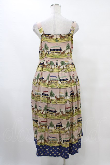 Jane Marple / Board gameストラップドレス ピンク×ライトネイビー H-25-10-04-1029-JM-OP-KB-ZH