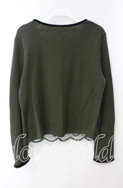 TOMATSU / ネットフラワーカットソー 38 グリーン O-25-09-29-064-LO-TO-IG-ZT103