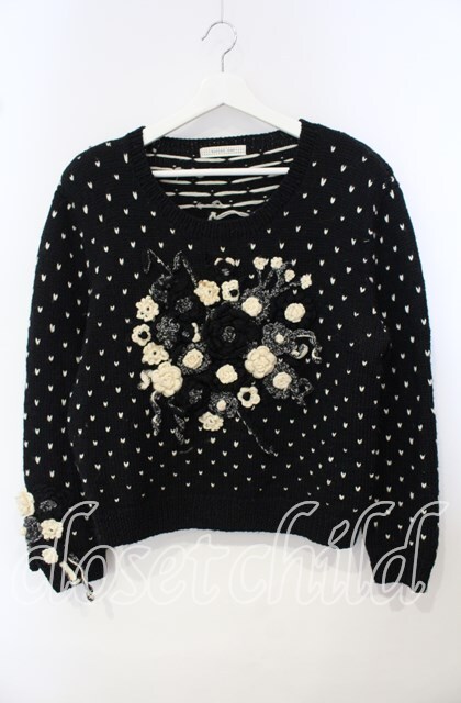 KANEKO ISAO / 薔薇モチーフニット ブラック O-25-09-29-012-EL-TO-IG-ZT357