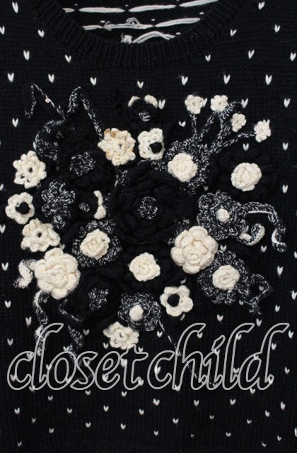 KANEKO ISAO / 薔薇モチーフニット ブラック O-25-09-29-012-EL-TO-IG-ZT357 [戻る]