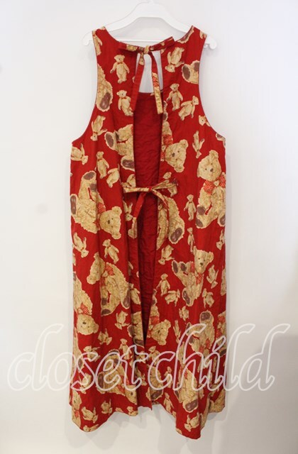 WONDERFUL WORLD / くまさん総柄後ろリボンジャンパースカート アカ O-25-09-29-073-LO-OP-IG-OS