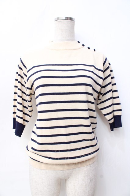 F i.n.t / ヴィンテージボーダー5分袖ニットプルオーバー F ベージュ×ネイビー Y-25-09-29-083-CA-TO-SZ-ZY