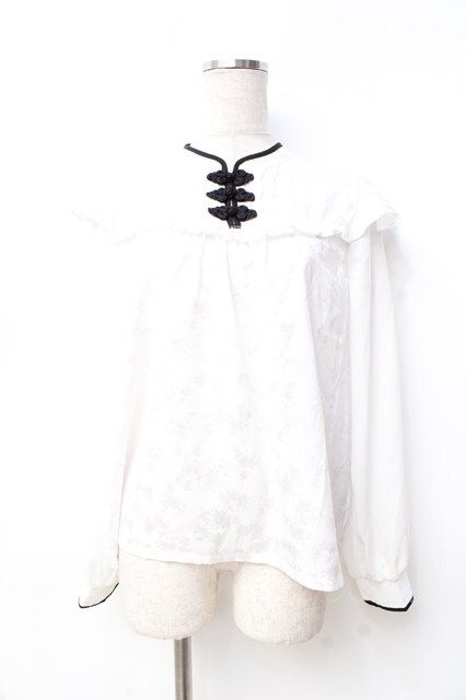 axes femme / チャイナ釦ジャカードブラウス 白 Y-25-09-29-087-AX-BL-SZ-ZI