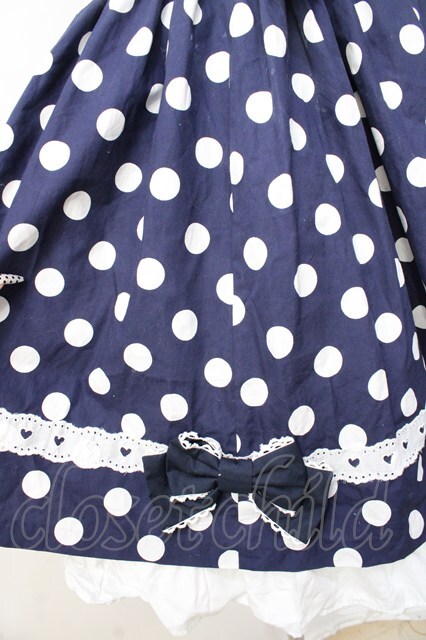 Angelic Pretty / ポルカドットジャンパースカート 紺 Y-25-09-29-126-AP-OP-SZ-ZY