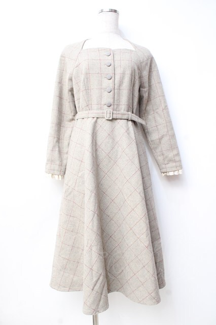 an another angelus / スイートハートネックラインチェックワンピース F ベージュ Y-25-09-29-144-CA-OP-SZ-ZY