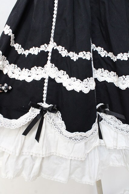 Angelic Pretty / スカラップドーリィスカート 黒×白 Y-25-09-29-148-AP-SK-SZ-ZY