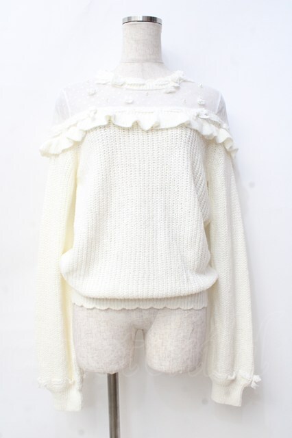 LIZ LISA / リボン通しフラワーニットトップス 0 オフ白 Y-25-09-29-186-LO-TO-SZ-ZI