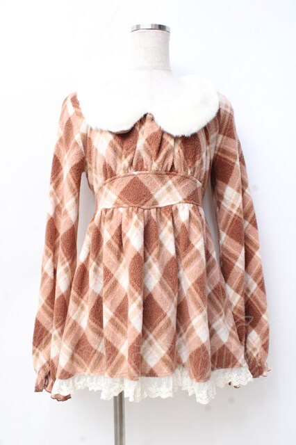 LIZ LISA / 衿ファーチェック柄起毛ワンピース 0 ブラウン Y-25-09-29-240-LO-OP-SZ-ZY [戻る]