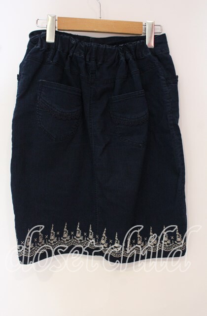 axes femme / スカラップ刺繍ストレッチデニムスカート インデイゴ O-25-09-30-016-AX-PA-IG-ZT257