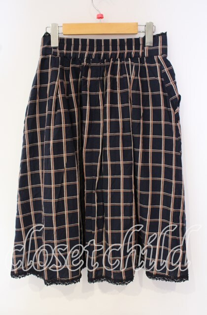 axes femme / 薔薇レース使いチェックミディスカート M ネイビー O-25-09-30-032-AX-SK-OW-ZT015